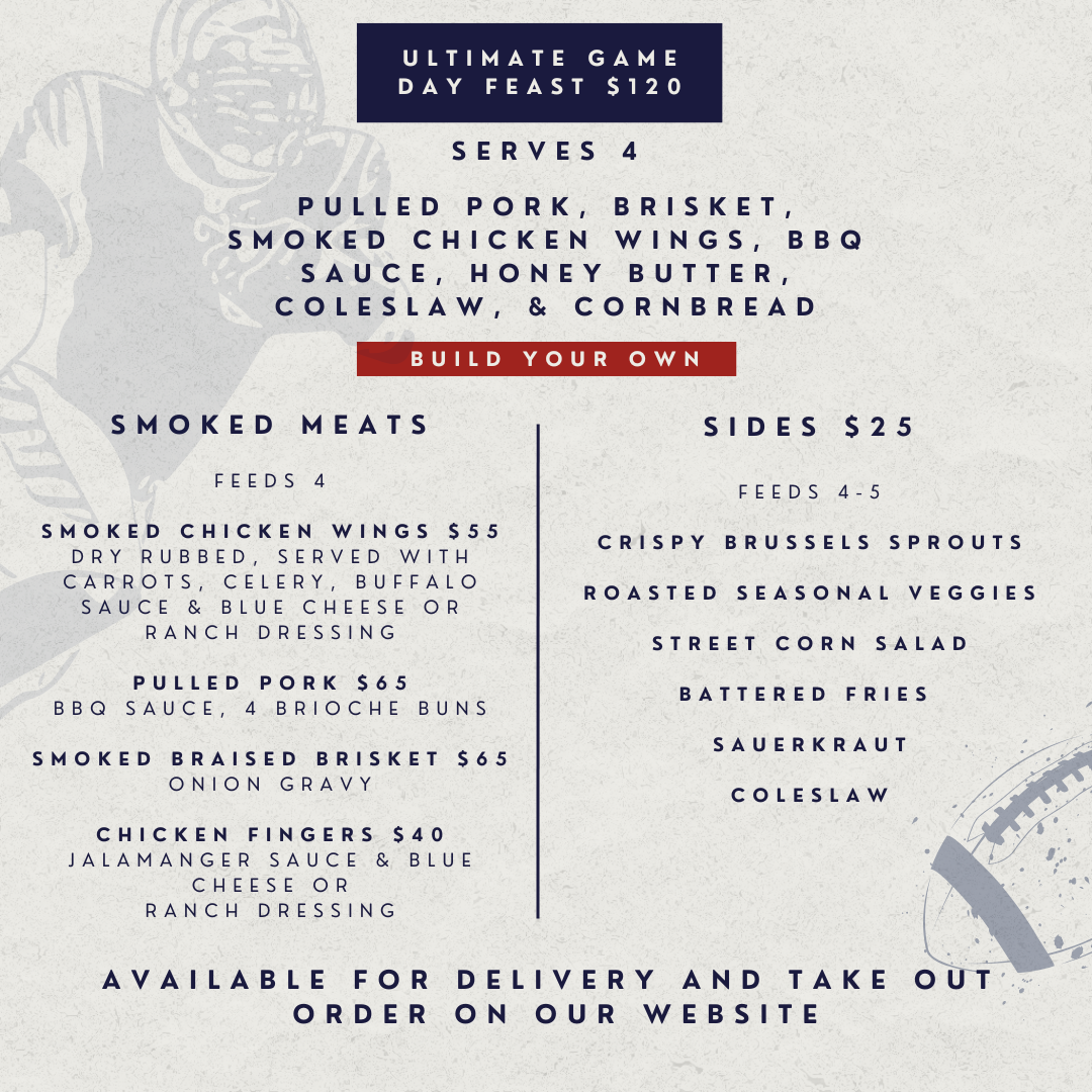 From smoked wings and pulled pork to brisket, sides, and all the game-day classics — we’ve done the heavy lifting so you can focus on the fun.